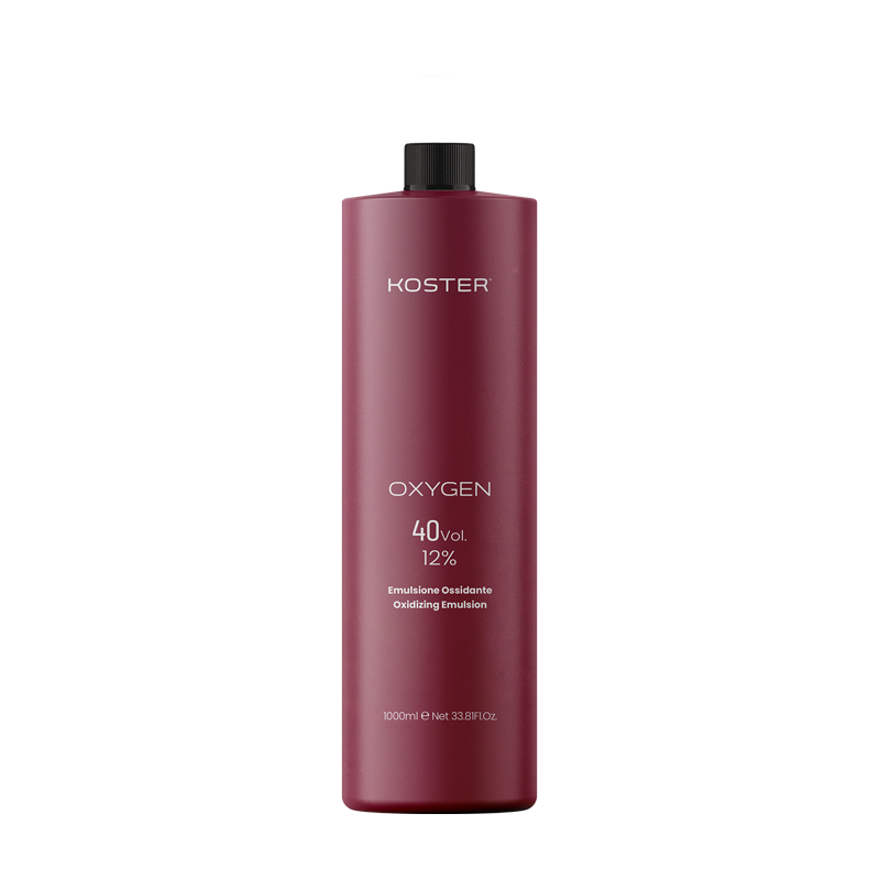 Koster Oxidising emulsion 40 volume (12%) is formulated to provide optimum coverage and lightening results by ensuring an even oxygen supply. The oxidative process guarantees homogeneous colouring and progressive and intense bleaching, without compromising the health of the hair fibre, due to the emollient action of the active ingredients.